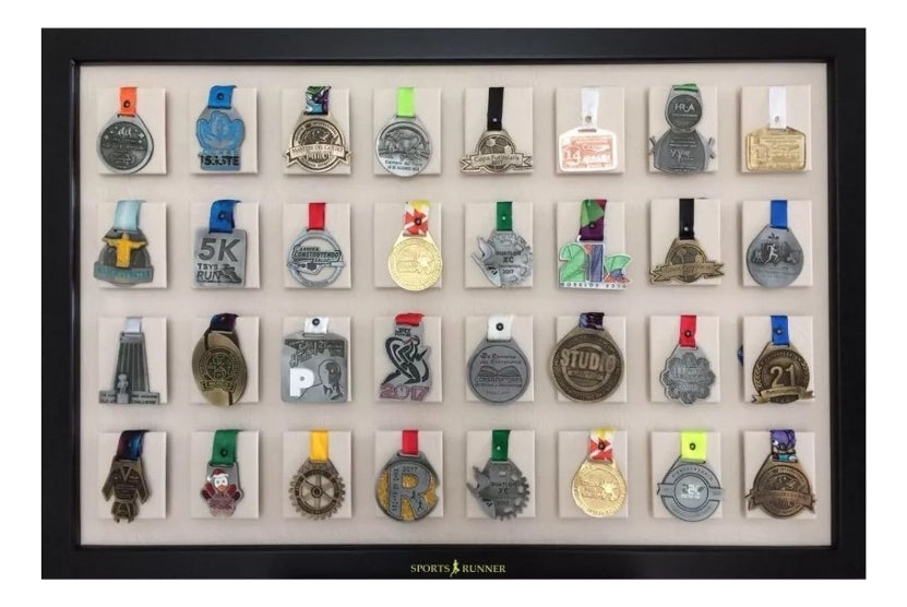 MEDALLERO PARA EXHIBIR MEDALLAS DE RUNNING, NATACIÓN, CLICLISMO, TAEKWONDO, ETC PARA COLOCAR 28 MEDALLAS Y ESPACIO PARA FOTO O 32 MEDALLAS SIN UTILIZAR LA TABLETA DE LA FOTO